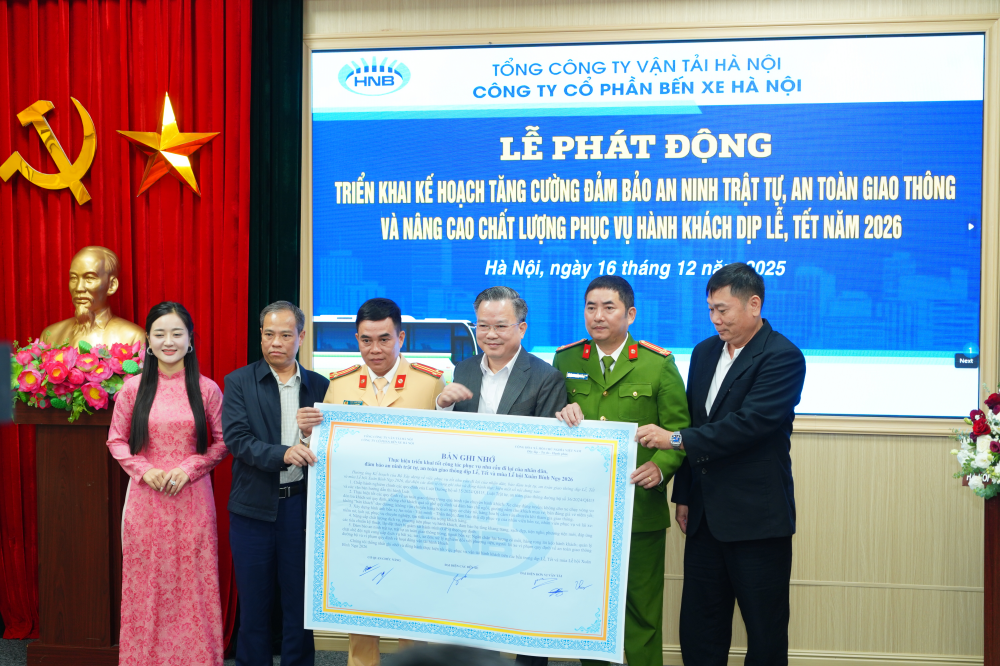 Tại Lễ phát động, đại diện Công ty CP Bến xe Hà Nội, các doanh nghiệp vận tải và lực lượng chức năng đã ký Bản ghi nhớ cam kết phối hợp triển khai hiệu quả công tác phục vụ nhu cầu đi lại của nhân dân, bảo đảm an ninh trật tự, an toàn giao thông trong dịp Lễ, Tết và mùa lễ hội Xuân Bính Ngọ 2026.