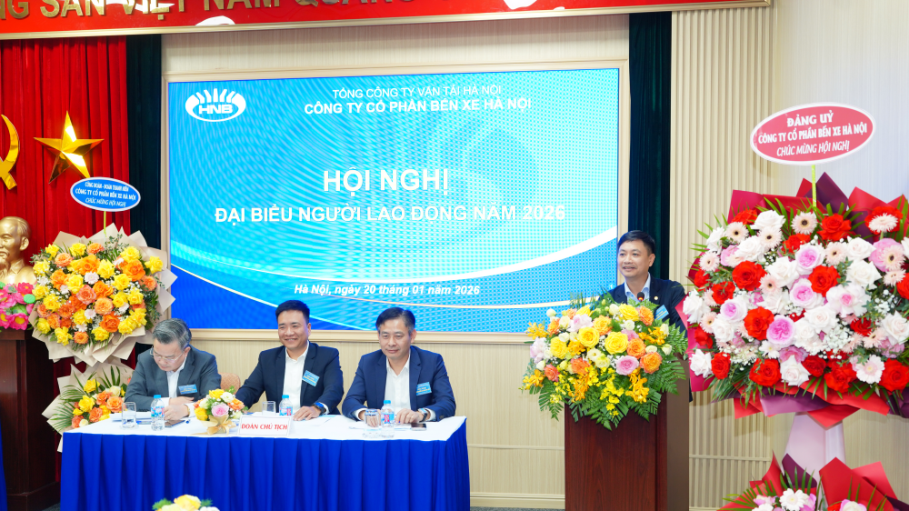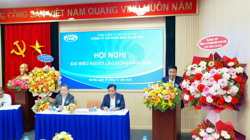 Trong không khí cả nước chào mừng Đại hội Đại biểu toàn quốc lần thứ XIV của Đảng, chiều ngày 20/01/2026, Công ty cổ phần Bến xe Hà Nội (HNB) đã long trọng tổ chức Hội nghị đại biểu người lao động năm 2026 và Hội nghị tổng kết công tác sản xuất kinh doanh năm 2025.